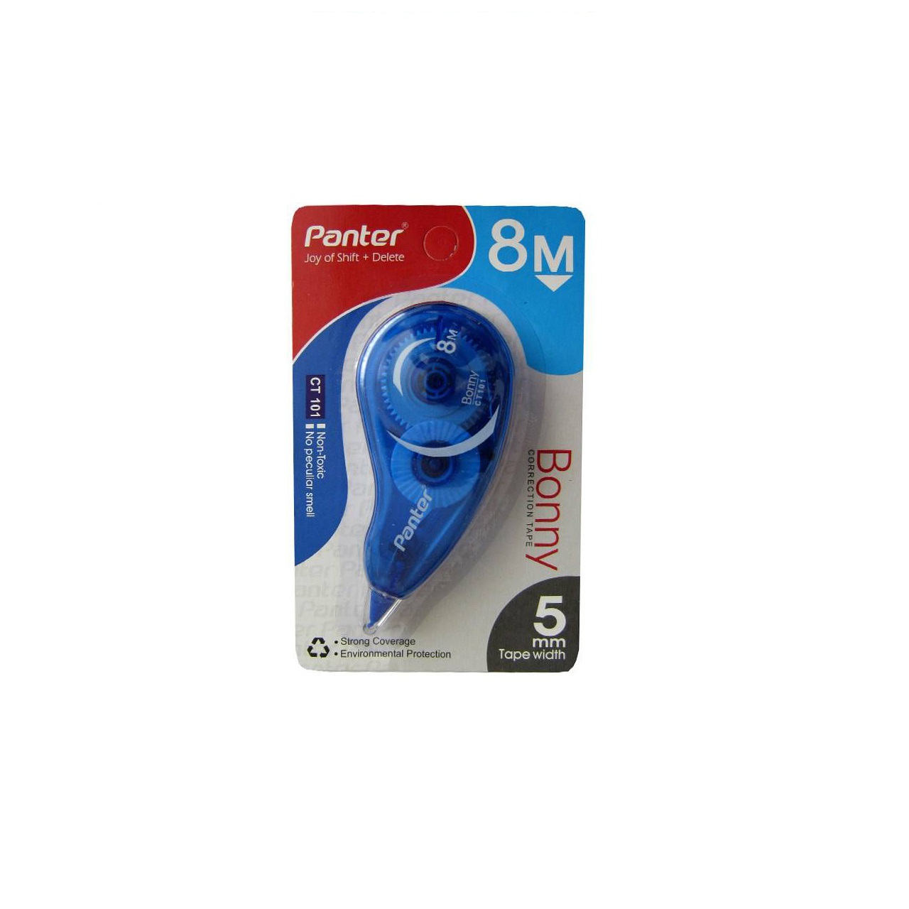 غلط گیر نواری پنتر به دلیل اندازه و حجم کوچک، بهراحتی در کنار دیگر نوشتافزار شما در جامدادیتان قرار میگیرد. شما میتوانید نوک این محصول را با دو زاویهی مختلف 45 و 90 درجه روی کاغذ قرار داده و روی اشتباهات نوشتاری خود را بپوشانید. دارای بدنه ای با قابلیت بازیافت می باشد که بسیار مناسب برای محیط زیست است و همچنین با بدنهی شفاف خود به شما امکان میدهد که بتوانید مکانیسم عملکرد این نوار غلطگیر را ببینید. دارای پوششدهی بالا و خشک شدن سریع که امکان تصحیح فوری و کامل اشتباهات را فراهم میکند. غلطگیر نواری پنتر دارای نواری به طول 8 متر است.