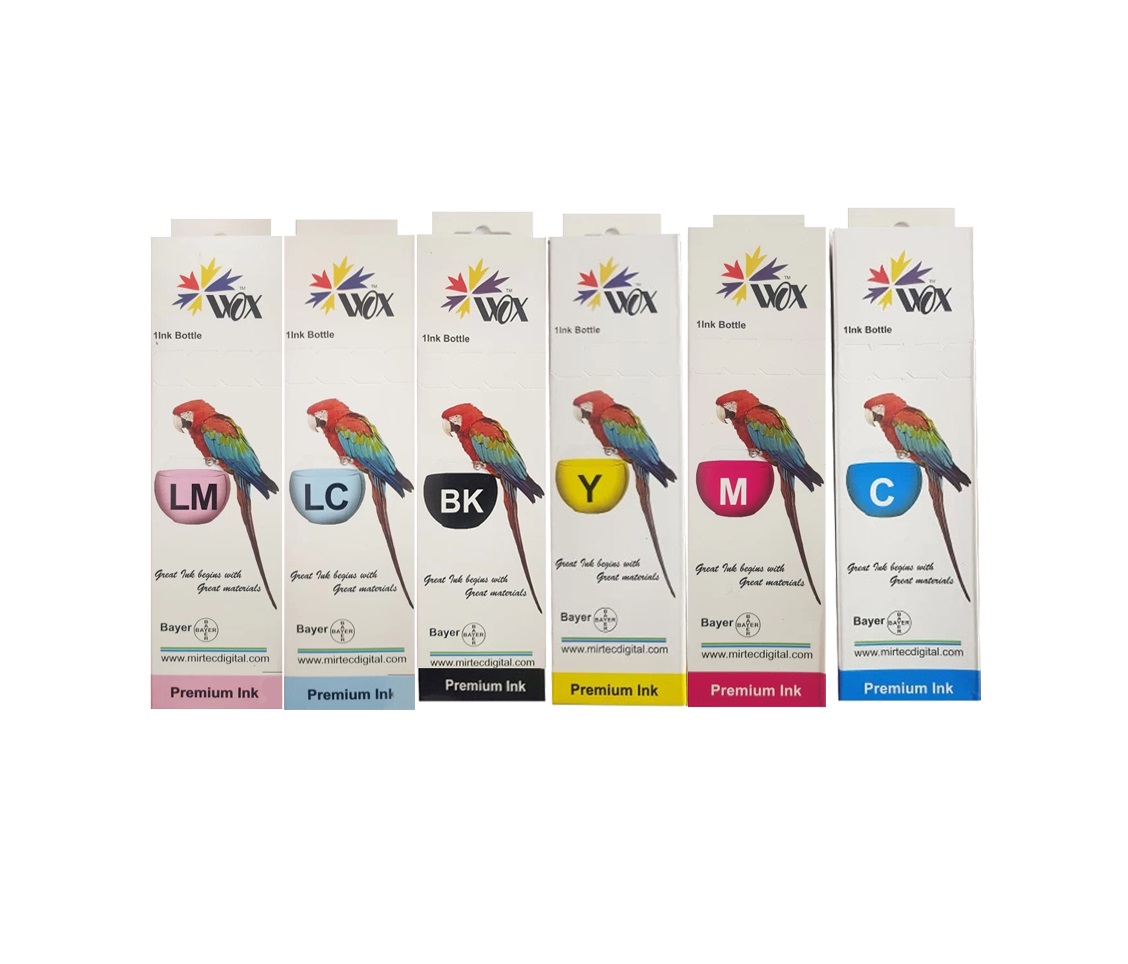 پک جوهر سابلیمیشن 6 رنگ (آبی/قرمز/مشکی/زرد/آبی روشن/قرمز روشن) از تولیدات برند وکس (WOX) در حجم 100 میلی لیتر یا 100 سی سی است که نوع کاربری آن بصورت چاپ حرارتی سابلیمیشن بوده و با تمامی پرینترهای مجهز به تکنولوژی چاپ جوهرافشان اپسون سازگاری کامل دارد، ناگفته نماند کارکرد هر یک از این جوهرها حدود 1200 برگ معرفی شده است.
