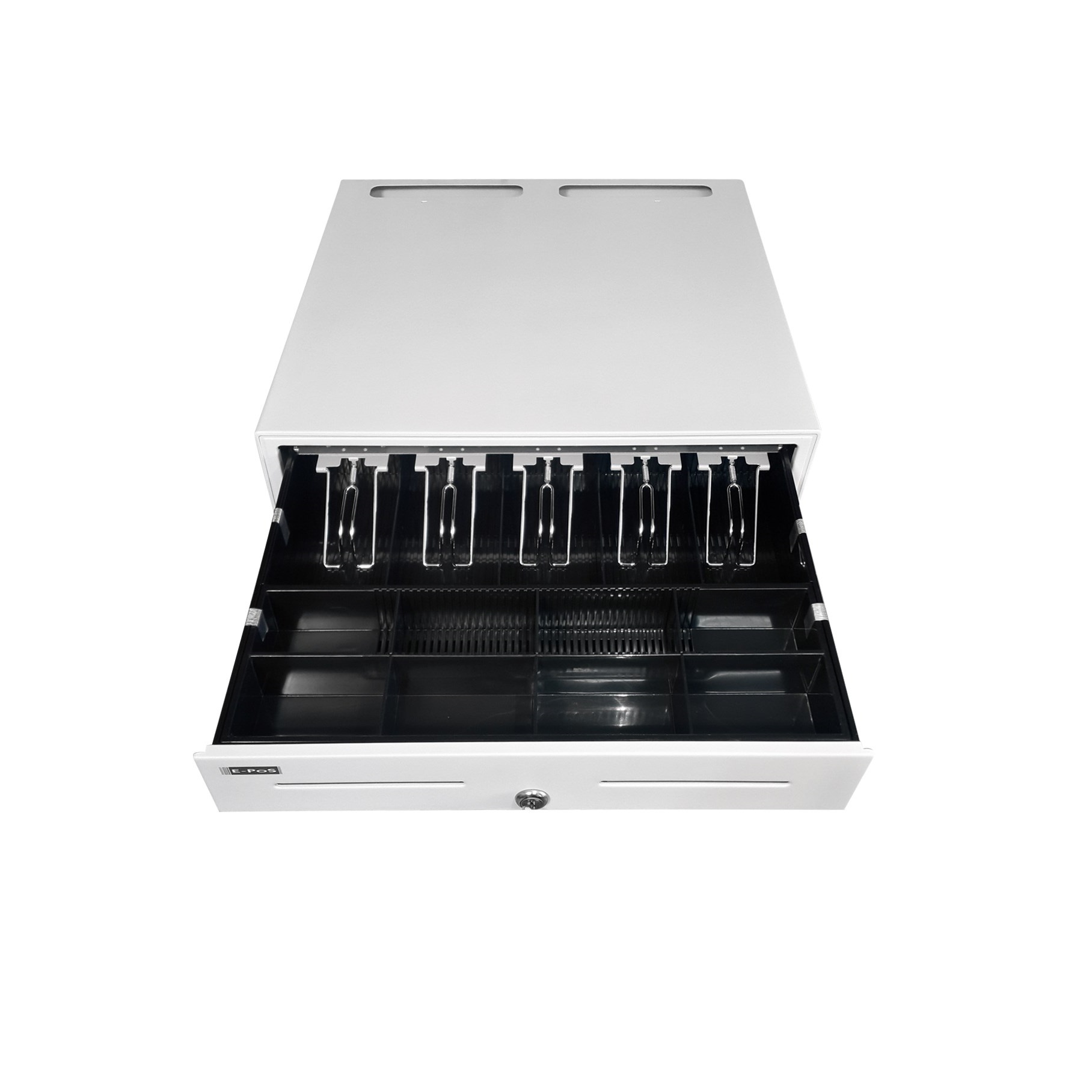 در پایان از دیگر قابلیت های تعبیه شده برای کشوی پول (E-POS ECH-460) می توان به مواردی نظیر تجهیز به زنگ هشدار جهت مطلع کردن کاربر در هنگام باز شدن درب کشو، بهره مندی از درگاه ارتباطی در قالب پورت (Rj11) و همچنین امکان اتصال به انواع فیش پرینترها اشاره کرد.